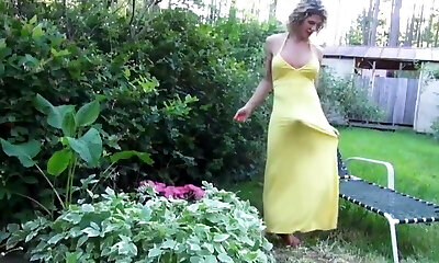 BEAUTIFUL MATURE TRANNY IN Lengthy YELLOW DRESS