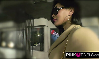 热气腾腾的亚洲Tgirl在渔网Gimp装备得到对接撞无避孕套