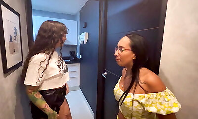 un mec a surpris sa copine trans en train de tricher avec une autre transexuelle et s'est joint à elle pour une double pénétration
